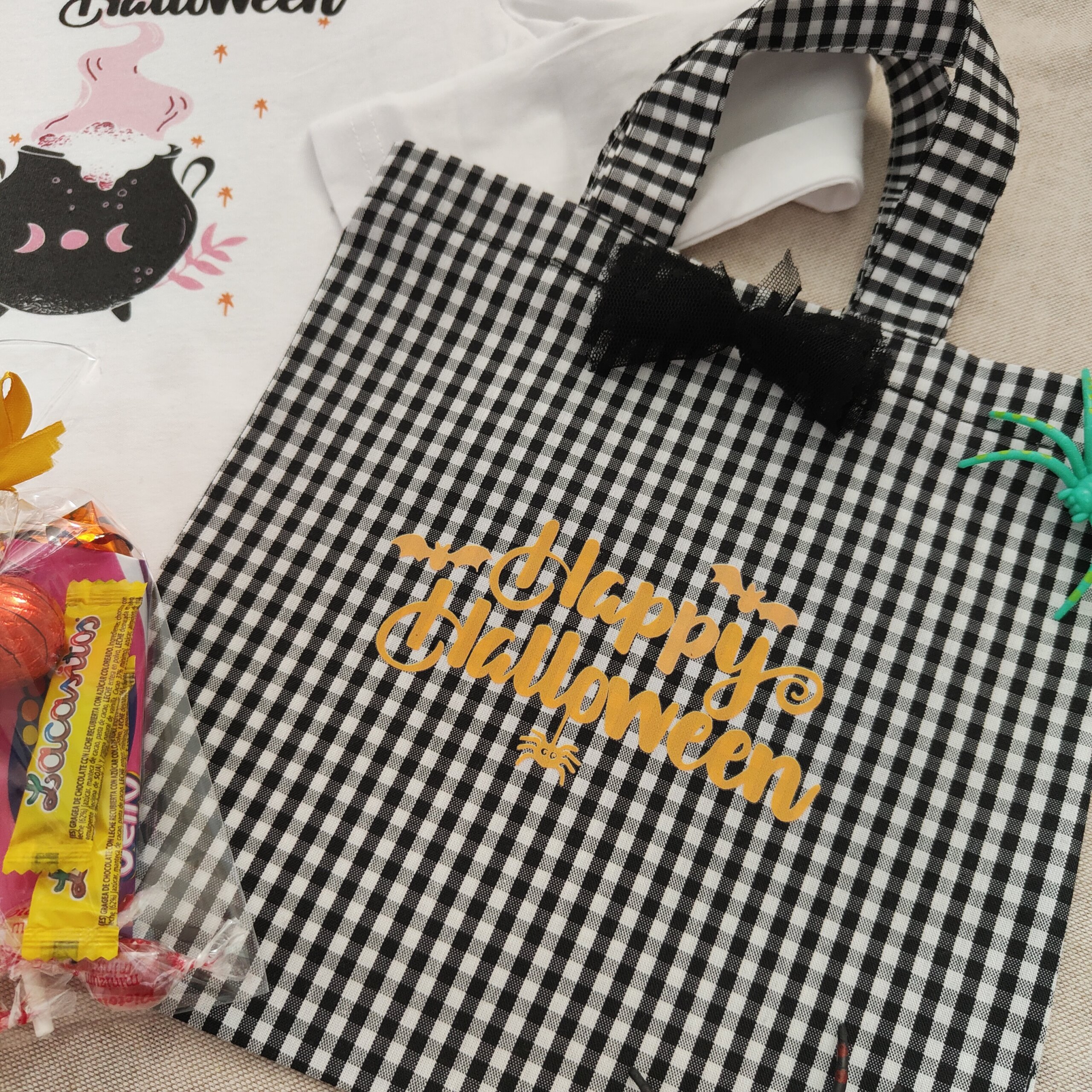 Bolsita hecha a mano de tela algodón para la noche mas terrorífica del año.