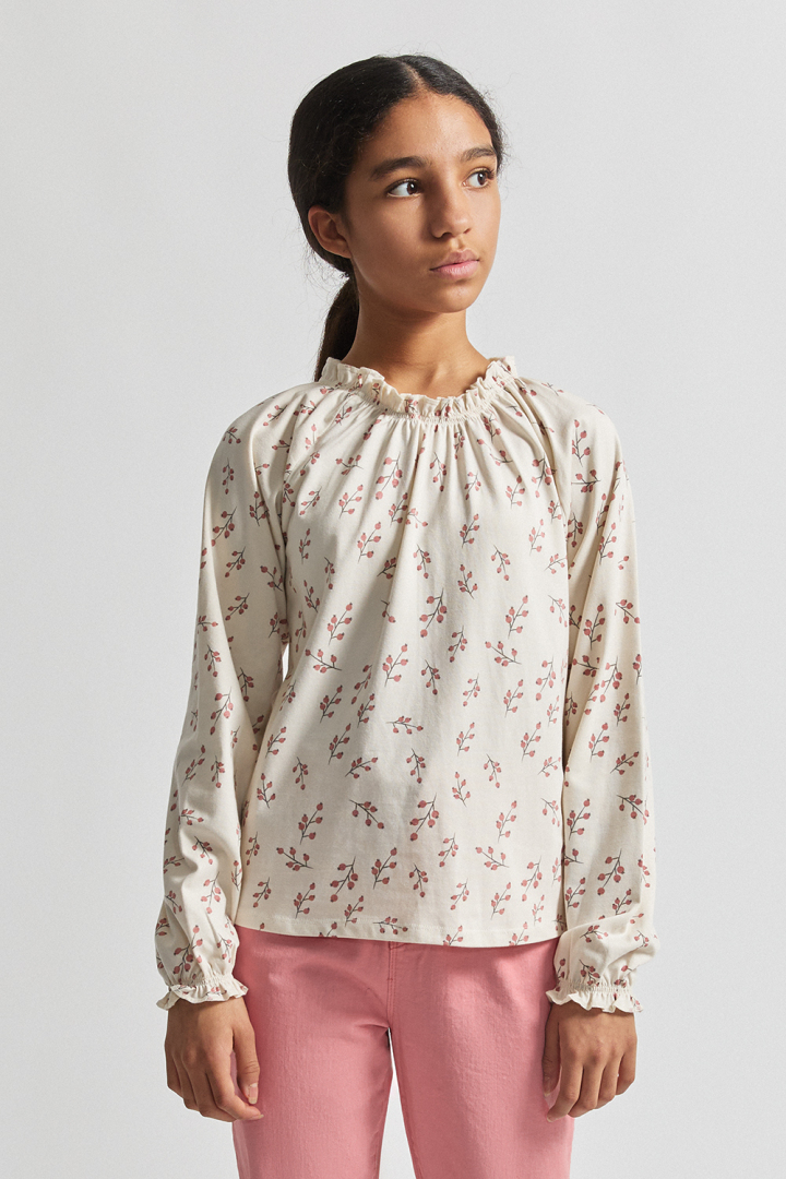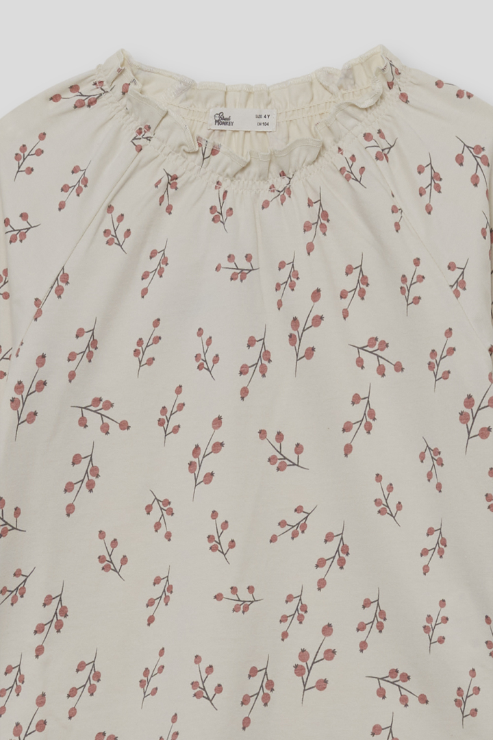 Camiseta en color blanco roto con estampado de ramitas en tonos maquillaje.