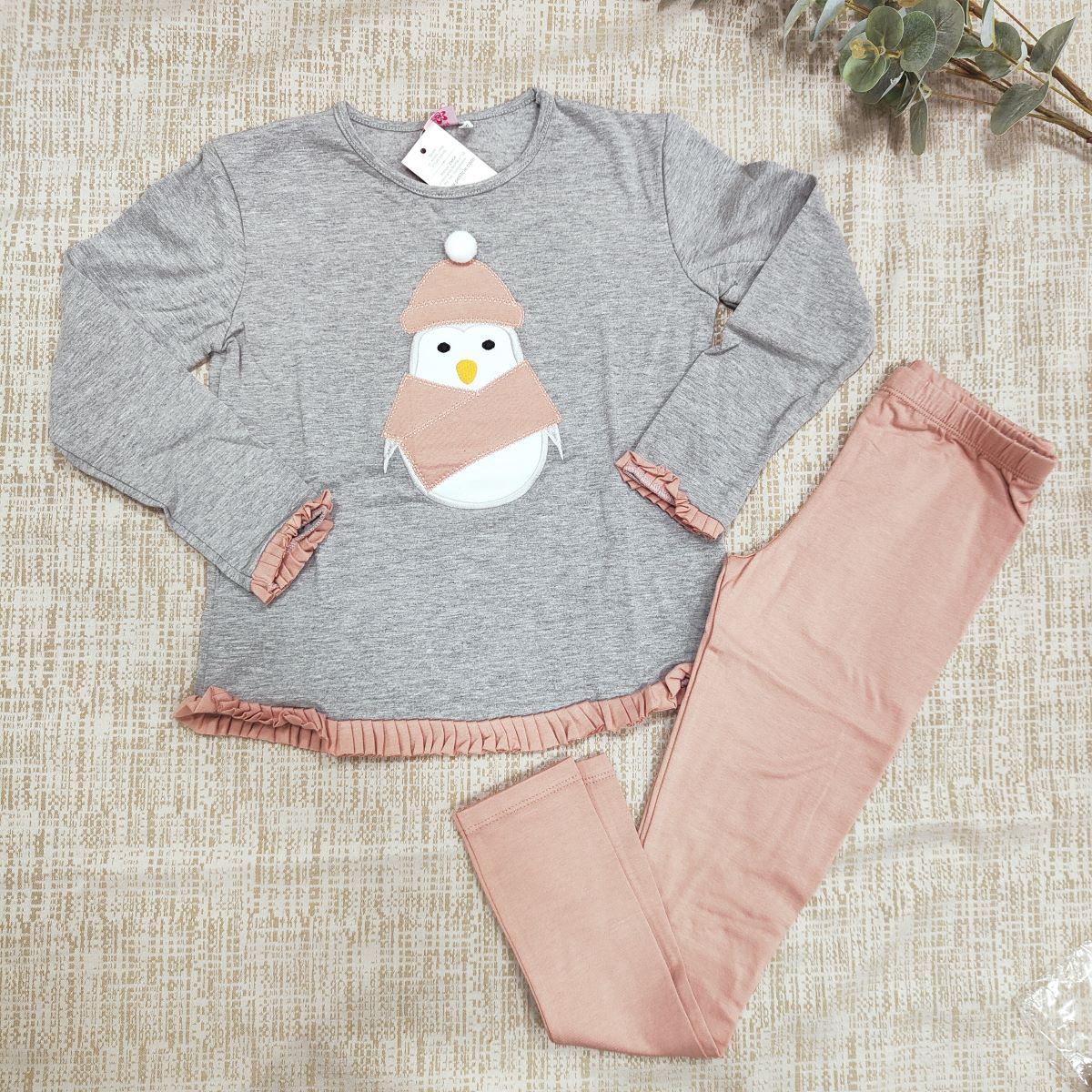 Conjunto para niña de 2 a 14 años en color gris y rosa.