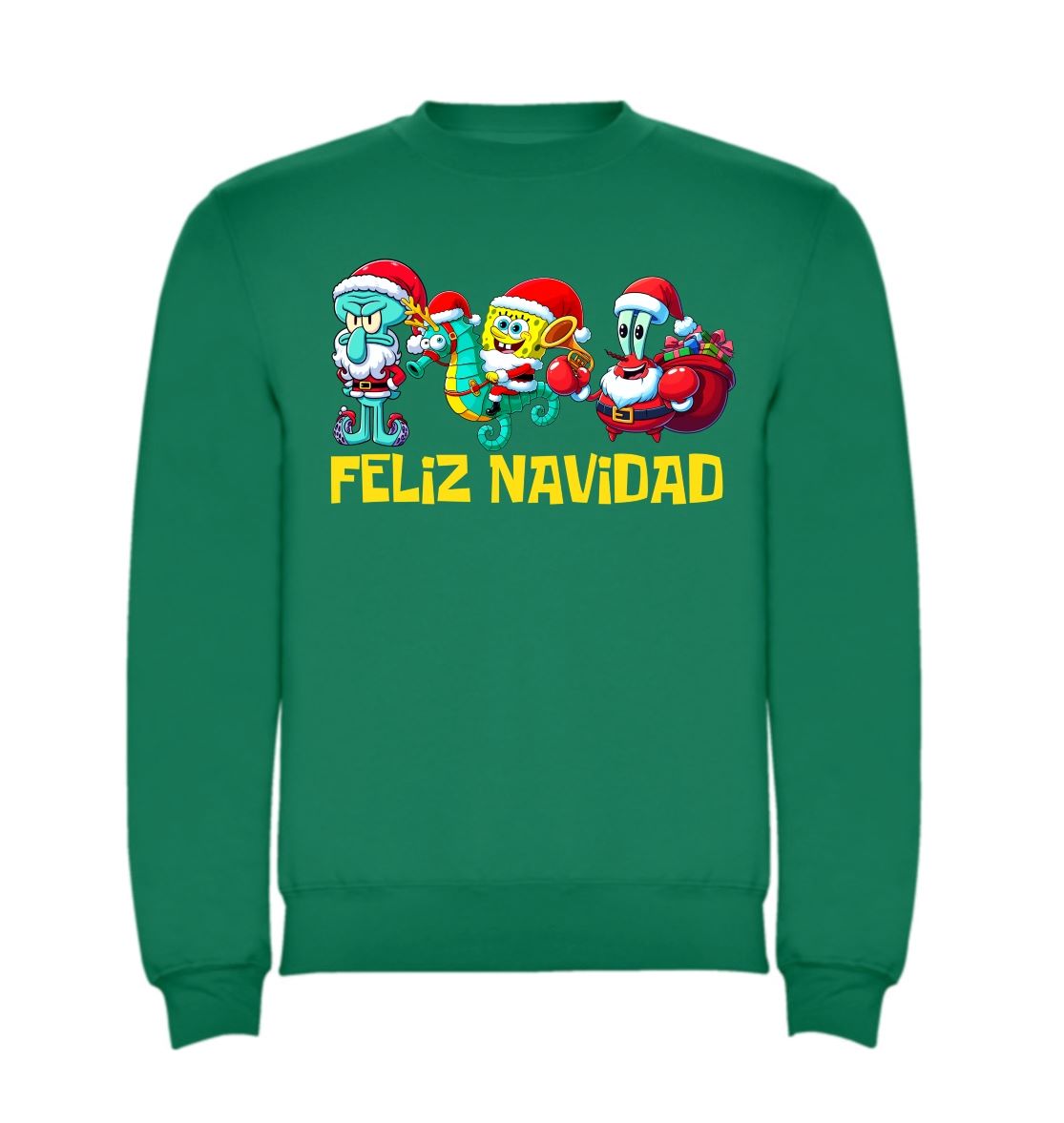 Sudadera con impresión digital navideña de bob esponja navidad.